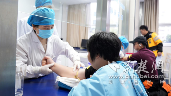 医护人员对外卖配送员进行抽血检查。通讯员供图