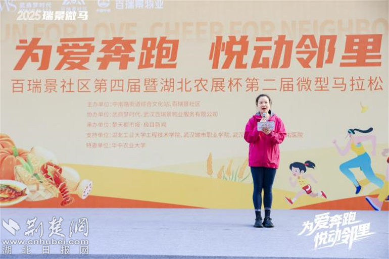 荆楚网(湖北日报网)讯(通讯员 王琪琳)金秋送爽,活力涌动。11月16日上午,武商梦时代的赛道上,一面印着“邻里百瑞景,万户一家亲”的橙色旗帜格外醒目——这是武汉市武昌区中南路街道百瑞景社区第四届暨湖北农展杯第二届微型马拉松的现场。500名身着统一参赛服的跑者中,有携手冲线的亲子家庭,有白发苍苍却精神矍铄的老街坊,也有首次参赛的大学生志愿者。