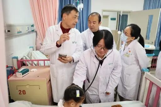 查房期间,武汉大学人民医院专家组深入潜江市中心医院儿科病房,认真听取了主管医生关于疑难危重病例的详细汇报,仔细查阅了病历资料,细致地进行了体格检查。专家组结合丰富的临床经验,就疾病的诊断思路、治疗方案优化及预后管理等方面提供了深入的指导,提出了诸多宝贵意见。