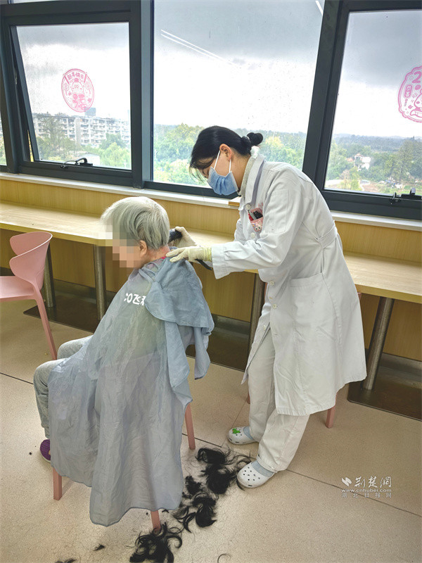 如今,科室护理人员跟着有经验的护工学理发,工具盒里总备着适配老人的用品,每月平均为2位患者理发,“哄”着抗拒的老人接受照料,成了大家的拿手活。