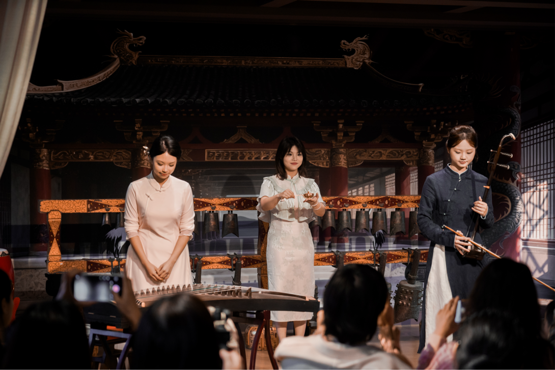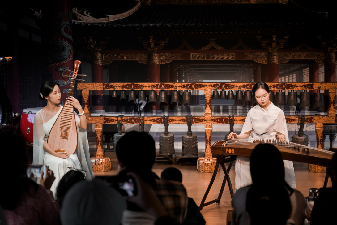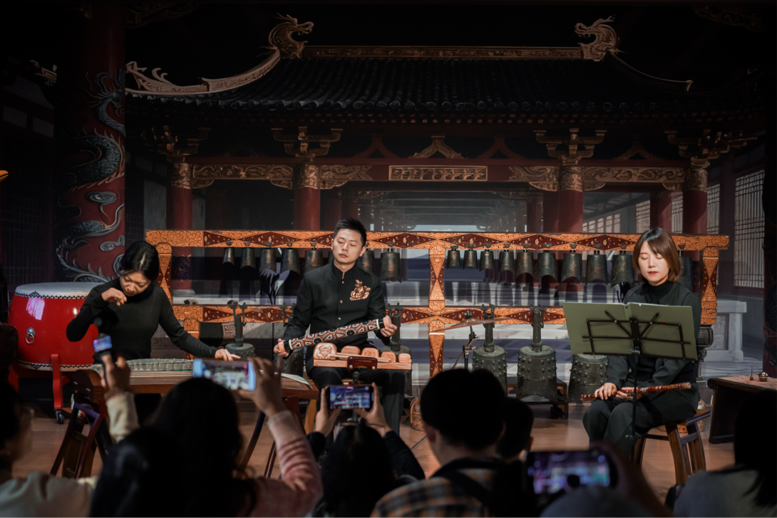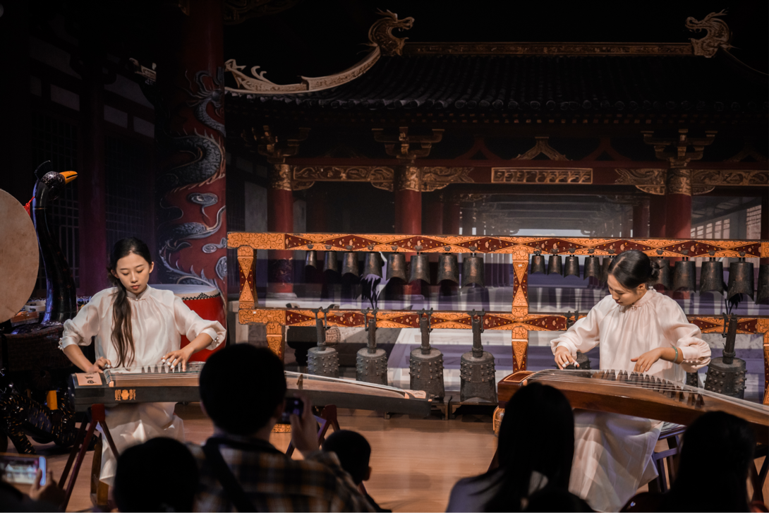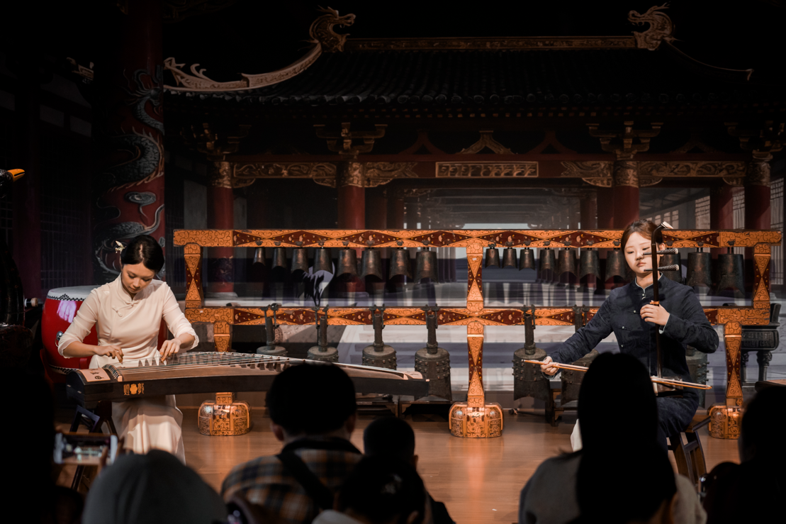 荆州博物馆以“让文物从展柜走向舞台”为底色:编钟厅的古雅空间成为演出主场,战国漆器展柜与《纪南城·砥砺》的编磬声共振,曾侯乙墓出土的羽调式音阶融入乐曲创作,馆内藏有的楚文化脉络更成了音乐会“楚墟新声”板块的核心灵感源。从章华台到铜绿山,荆州博物馆的考古资源,让沉睡的遗址变成了旋律里的“楚魂载体”。