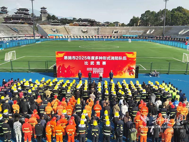 荆楚网(湖北日报网)讯(通讯员张宝训、周华平)11月20日,恩施市2025年度多种形式消防队伍比武竞赛在市体育中心举行,来自全市各乡镇和消防重点单位组成的75支队伍展开赛场“较量”。副市长程凯出席并宣布开幕。