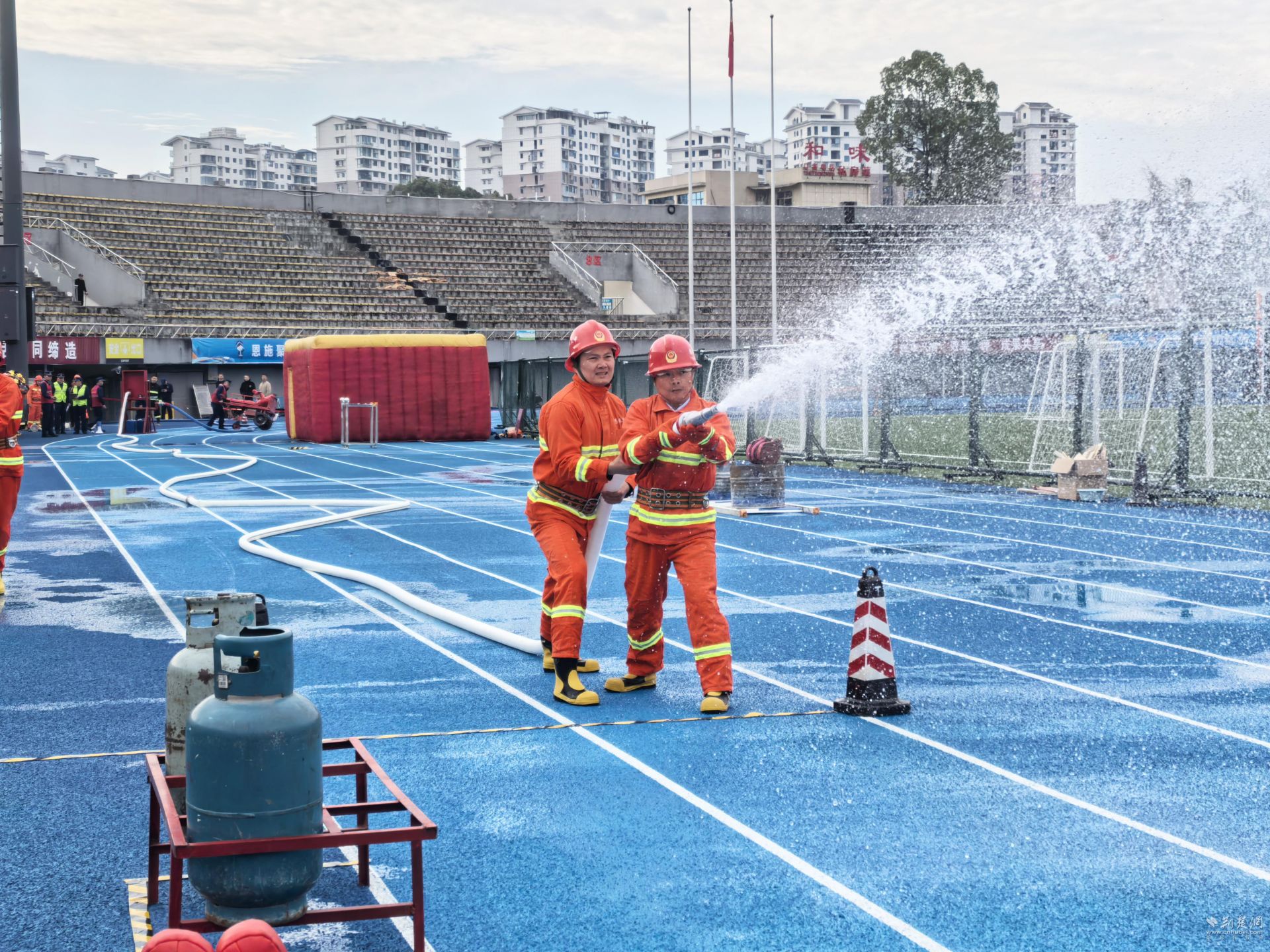 此次比武竞赛不仅是一次切磋技能和交流经验,更搭建起互相学习、增进友谊的平台。来自州城臻诚物业的工作人员郑铁虎感叹不虚此行,通过比赛不仅能巩固提升灭火救援能力,还能在赛中学,看到自身不足。现实生活中也遇到很多轻微火情,通常均能第一时间赶到并扑灭火势,有效保障业主的生命财产安全。