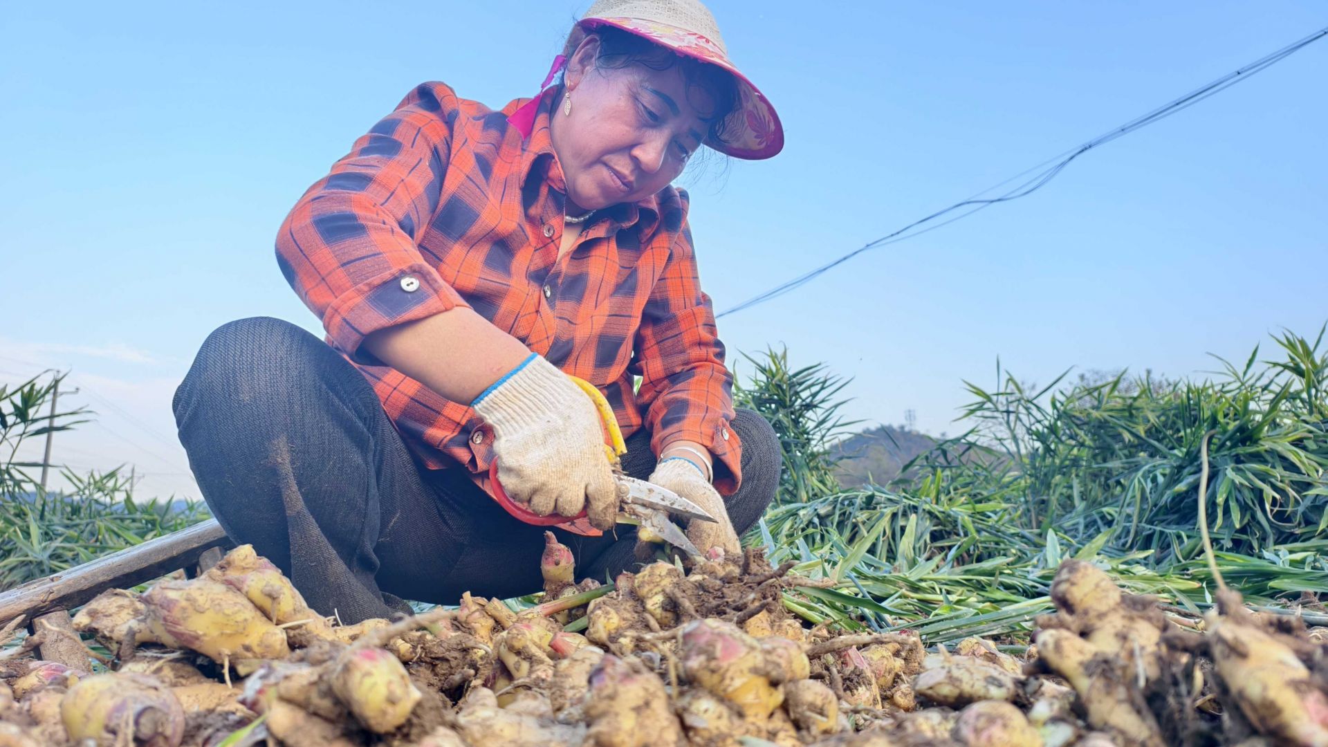 “我家在红寨村,骑车过来10分钟,一天能挣100块钱,还不耽误照顾老人孩子。”正在分拣生姜的村民丁桂梅边说边利落地将姜块装筐。