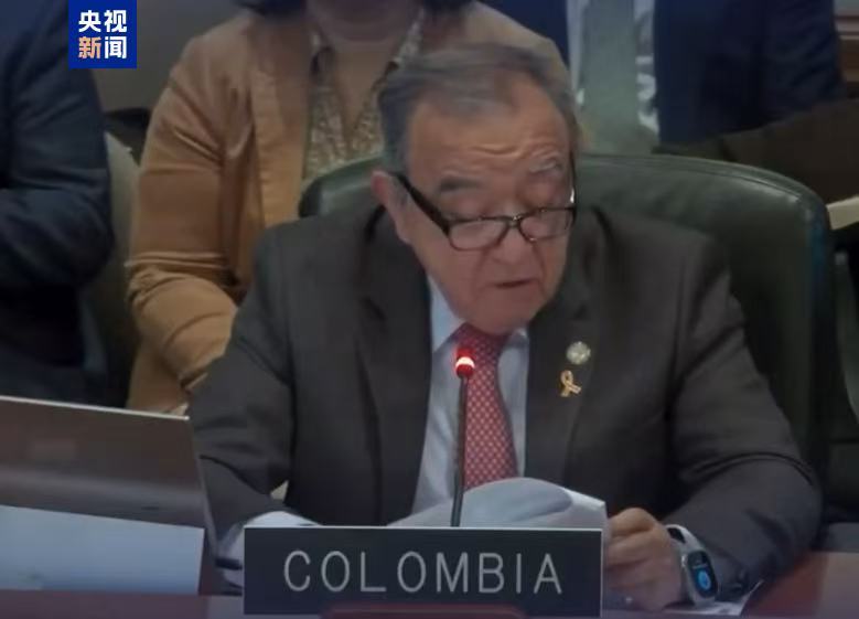 △哥伦比亚常驻美洲国家组织代表巴尔加斯发言现场