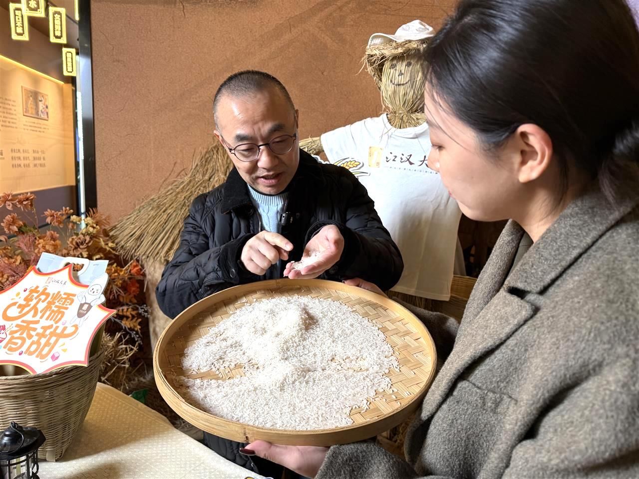 “朋友们,都说江汉平原出好米,我今儿特意从北京飞过来,看看这‘江汉大米’到底有什么不一样!”