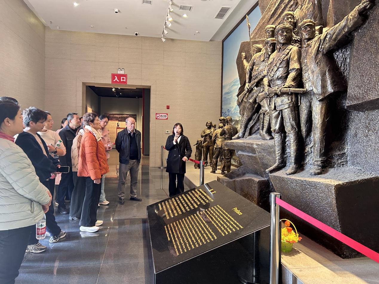 两支部前往湘鄂赣边区鄂东南革命烈士陵园继续开展学习。该陵园是国务院首批“全国重点烈士纪念建筑物保护单位”,并被民政部、湖北省政府列为爱国主义教育及国防教育基地。在巍峨的革命烈士纪念碑下,党员们肃立瞻仰,向以吴致民、曹大骏等为代表的30万鄂东南英烈致敬。走进陵园陈列馆,大家通过丰富的图文史料、实物展陈与场景还原,系统学习了鄂东南地区从武装割据到抗日战争时期的革命历程,深刻感悟中国共产党人“为有牺牲多壮志”的赤诚信仰和“敢教日月换新天”的斗争精神。