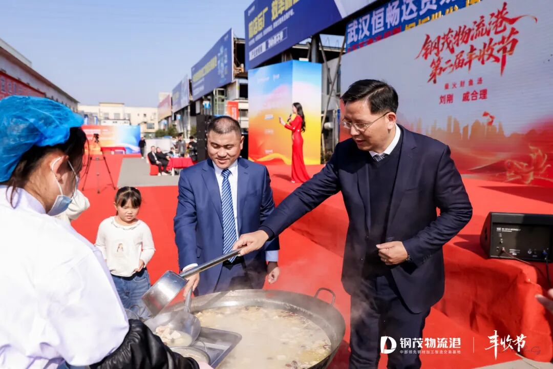 发布会结束后,第二届“丰收节”温馨开启。独具地方特色的宴席氛围,展现了钢茂物流港与商户之间的深厚情谊。德成控股集团董事长徐小波致以开场诚挚欢迎,德成控股集团执行总裁刘刚和钢茂物流港总经理戚合理分送寓意吉祥的财鱼汤,将现场气氛推向高潮。精彩纷呈的文艺表演,更增添了喜庆祥和的节日氛围。