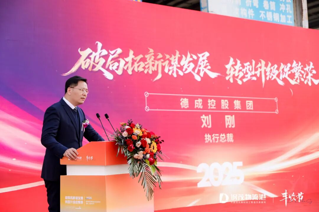 当日上午9时,活动拉开序幕。德成控股集团执行总裁刘刚致辞,回顾园区十年发展历程,阐述从“传统市场”到“智造引领”的战略转变。湖北省工商联、武汉市工商联、江夏区等政府代表应邀出席并致辞,对钢茂物流港的转型路径与产业贡献予以高度认可。