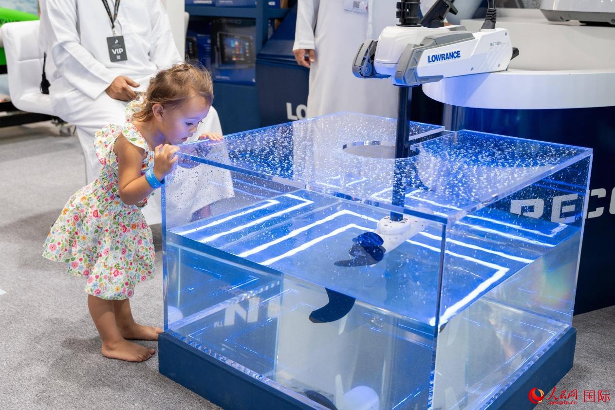 一位小观众好奇地观察螺旋桨工作。人民网塔里克·易卜拉欣摄