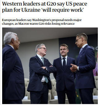 报道还称,欧洲多国领导人在峰会间隙举行会议,讨论他们对该计划的回应。他们在联合声明中提到,该草案“包含了对实现公正持久和平至关重要的要素”,但目前其“只是一个基础,尚待进一步完善”。