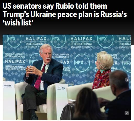 另据美国广播公司(ABC)报道,几名匿名美国官员透露,鲁比奥在电话中告知他们,这项“28点”和平计划并非由美国制定。