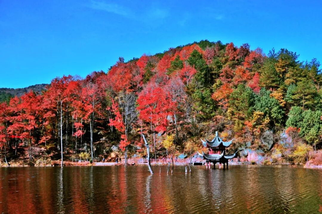 枫叶林沿着蜿蜒的栈道缓缓铺开。你可以散步,也可以乘上那艘慢悠悠的画舫船。当船行至湖心,两岸的红叶倒映在碧水里,那个瞬间,你会觉得整个秋天都在为你绽放。