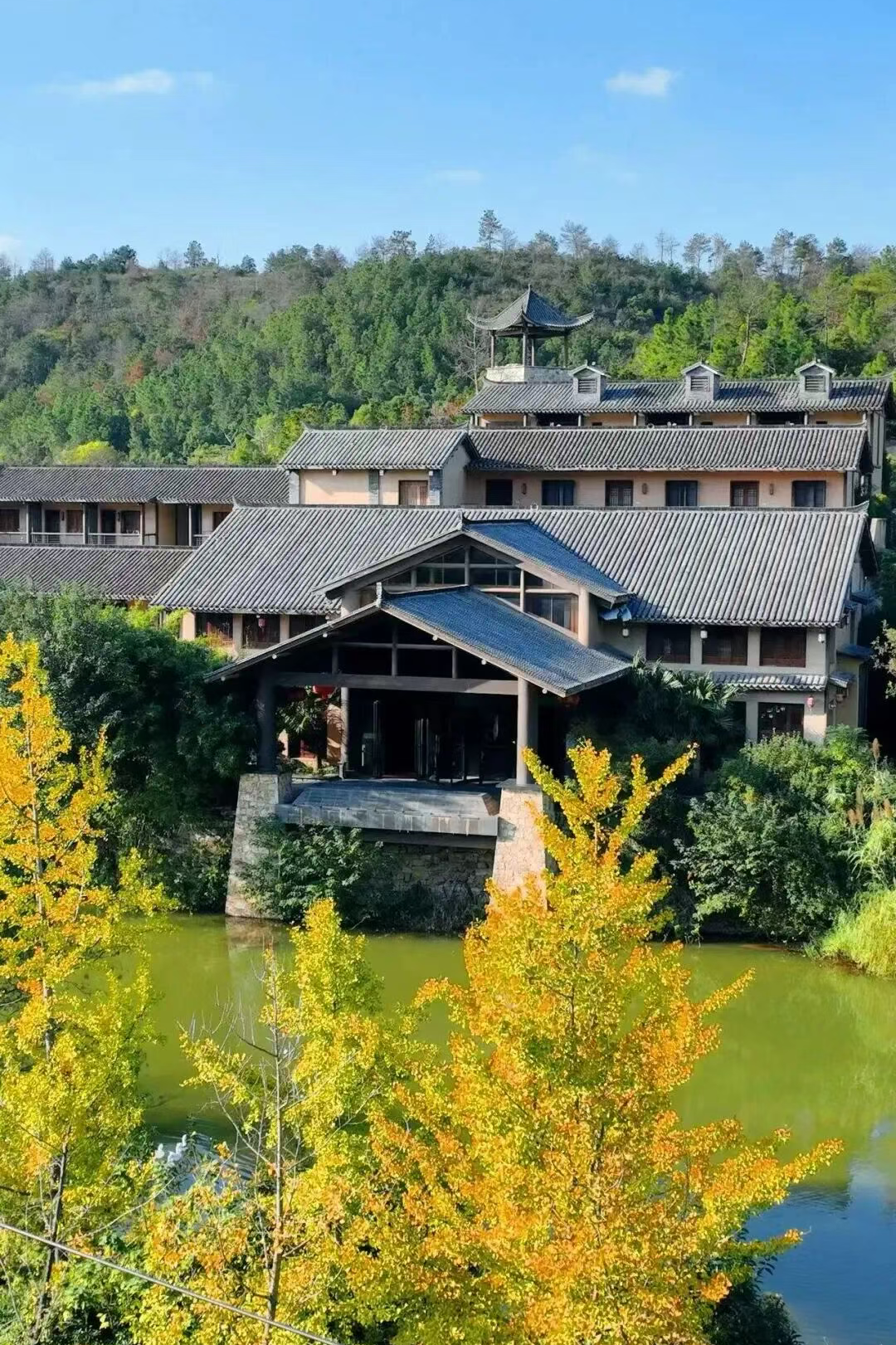 3. 梯田观景处以银杏与乌桕色彩为前景,远山为背景,呈现层次丰富的秋色。