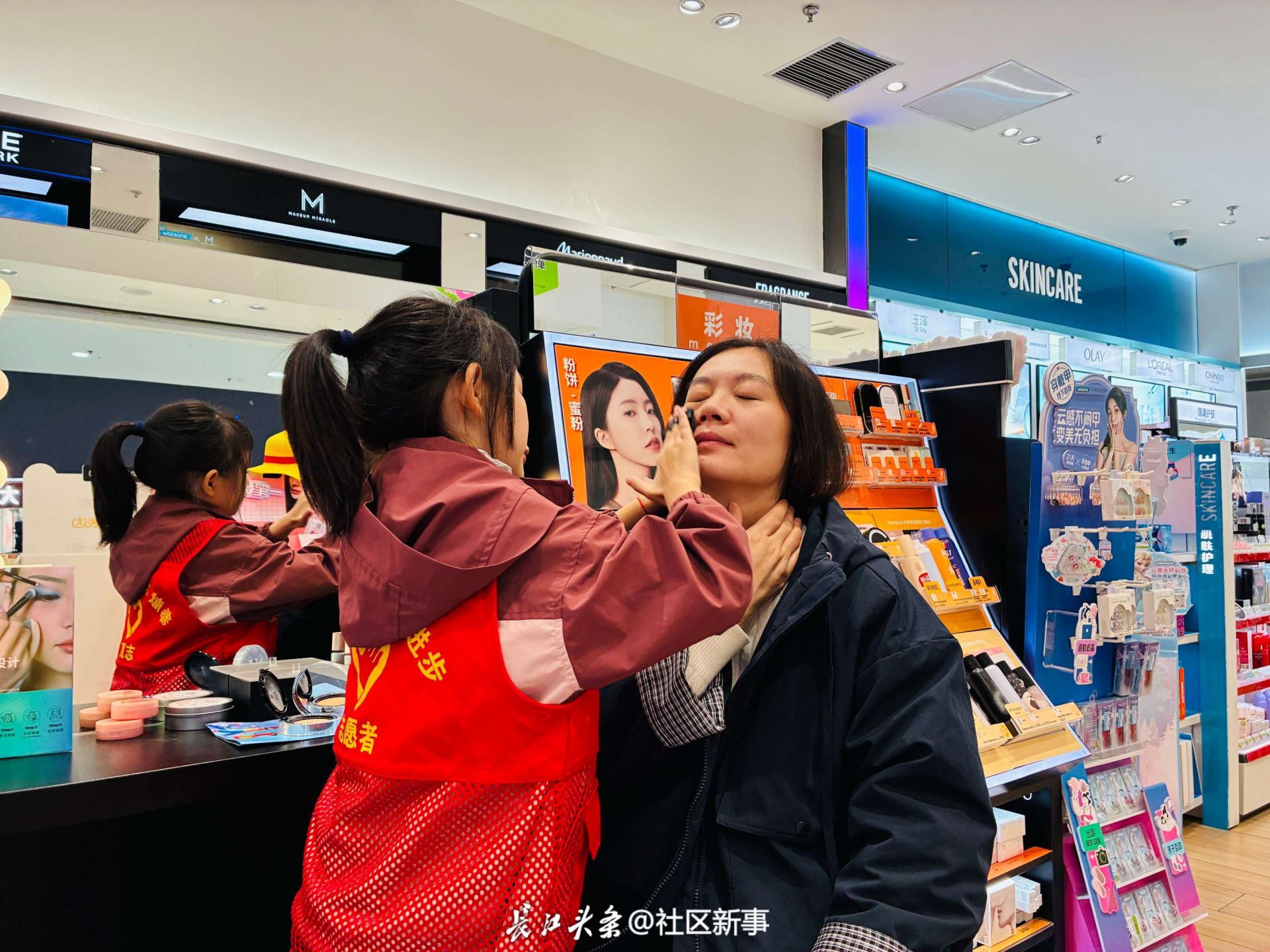 活动当日,万达广场内化身为一个充满奇趣探索的亲子乐园。参与家庭手持特制打卡地图,开启了一段丰富多彩的体验之旅。在骆驼户外店,孩子们摇身变为“一日店长”,学习户外装备知识,体验店铺管理的乐趣,初步感知责任与服务的含义。屈臣氏的柜台前则洋溢着温馨与感恩,孩子们在专业人员的指导下,化身“小小化妆师”或“小小售货员”,亲手为妈妈化上美美的妆容或学习商品导购,用行动表达对母亲的深情,场面温馨感人。