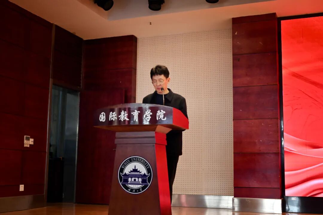 武汉大学国际教育学院党委书记雷世富致辞。他谈到,本次共建活动是一场融合诗词之美、历史之光与中国精神的文化盛宴,是深化馆校协同、拓宽来华留学生国情教育路径的积极探索。期待以情境化的形式,促进来华留学生深入体会中国共产党团结带领中国人民从苦难走向辉煌的伟大历程,读懂真实、立体、全面的中国,当好促进中外文明交流互鉴的使者。