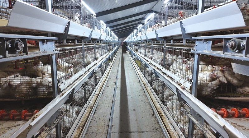 基地的高效运转,离不开立体化养殖模式与智能化设备的硬核支撑。“基地目前已建成15栋鸡舍,其中7栋已进入出栏阶段,每栋鸡舍可饲养4万只白羽鸡,仅需一名饲养员负责喂料匀料、水位检查及环境维护等日常工作。”基地负责人宋克刚说道,“依托数字化鸡舍环境控制系统,鸡舍温度被精准控制在18至24摄氏度,相对湿度维持在50%至70%,为鸡群打造了舒适宜居的生长环境。”与此同时,外围饲料运输车也在有序作业,持续为存栏鸡群补给优质饲料,保障养殖环节无缝衔接。