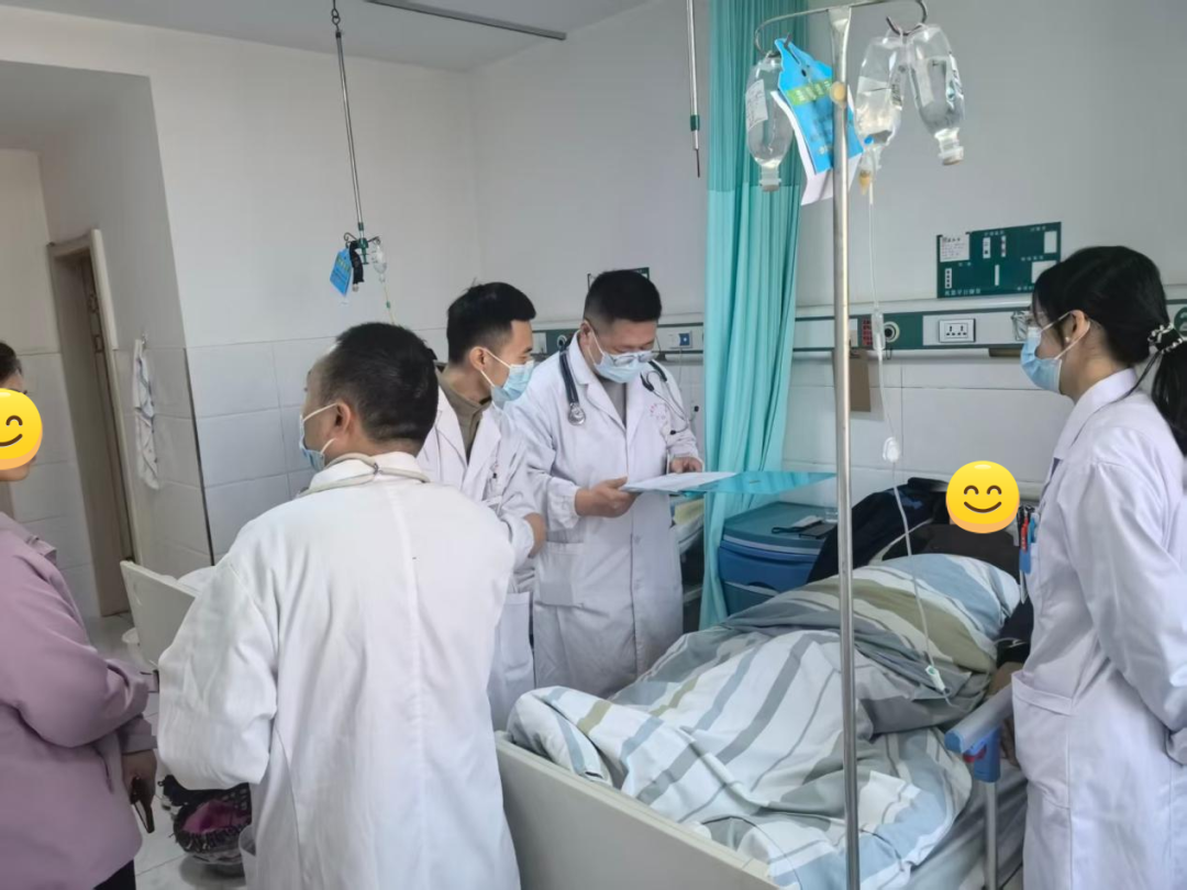 35床是一名糖尿病患者,涂金杰根据患者血糖情况,调整了治疗方案。并对管床医生提出要求:“患者的慢病管理要更细致,血糖监测频率得增加,饮食指导要具体到每餐的主食量。”随后,他打开手机展示最新诊疗指南中的“基层糖尿病管理路径”,要求医护人员严格遵循最新规范,保障基层诊疗同质化。患者家属握着涂金杰的手连连道谢:“以前这样的病得跑到城里去,现在在家门口就能得到专家治疗,真是太方便了。”