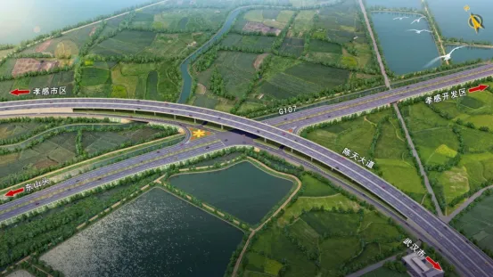 据项目技术负责人介绍,全线按照双向六车道标准建设,其中8.581公里已建成通车,剩余10.818公里新建段正全力推进。值得一提的是,道路在G107段采用菱形互通设计,主线高架桥上跨,确保交通畅通;跨仙女湖段则采用环保施工工艺,最大限度保护水域生态。项目建成后,从孝感主城区到武汉天河机场仅需30分钟,到阳逻港也将实现快速直达。