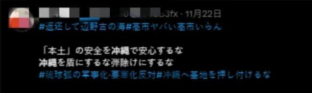 日本网友热评“不需要高市早苗”“勿将冲绳当作盾牌”,严正拒绝自己的家园成为潜在冲突的“盾牌”与“炮灰”,并强烈谴责日本政府“持续将美军基地强加于冲绳的行径”。