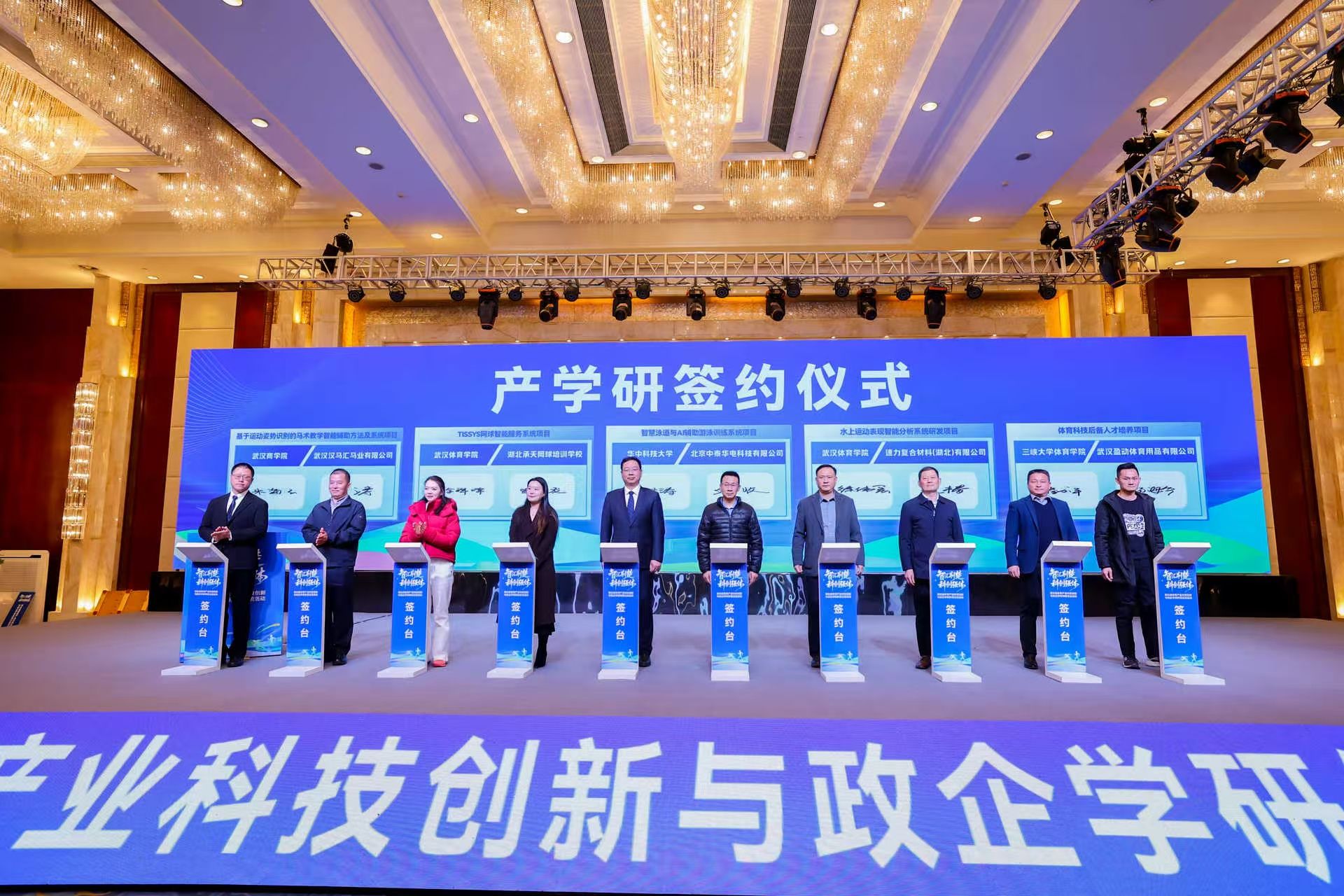 本次活动举行了合作签约仪式,多个投资机构与企业、高校就技术研发、成果转化等领域达成合作,标志着湖北体育产业政企学研协同创新取得突破,为构建体育科技创新生态奠定了坚实基础。