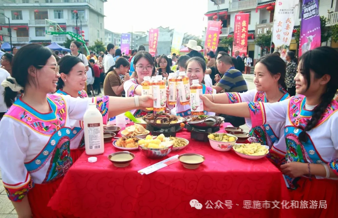 作为三张名片之一的“恩施女儿会”,如今已成为极具吸引力和传播力的核心IP。2025年女儿会期间,传统与创新的紧密结合,“我要回村唱山歌”将女儿会“情歌对唱”文化内核的深度还原与创新传承,“盛世女儿秀”主题活动引爆女儿城景区。女儿会活动期间,不仅带动文旅融合发展,更是通过文化活动助力,现场签约“恩施土豆”全产业链建设招商项目50亿元,达成土豆销售协议3700余万元、窑归销售协议2000万元,有力带动了当地特色产业发展。