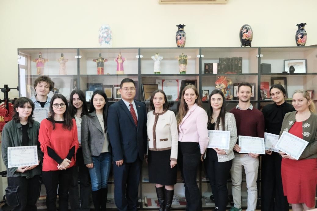 人民网华沙11月25日电 (记者禹丽敏)当地时间11月24日下午,首届中罗文学作品翻译大赛颁奖仪式在布加勒斯特成功举办。该比赛由布加勒斯特大学孔子学院主办、中国驻罗马尼亚大使馆支持。中国驻罗马尼亚使馆教育事务专员周国宁,布加勒斯特大学孔子学院罗方院长白罗米、中方院长苏宇以及布加勒斯特大学外国语言和文学学院教师包心茹、安德出席。获奖选手代表、孔院师生和布大中文系学生40余人参加活动。苏宇主持颁奖仪式。