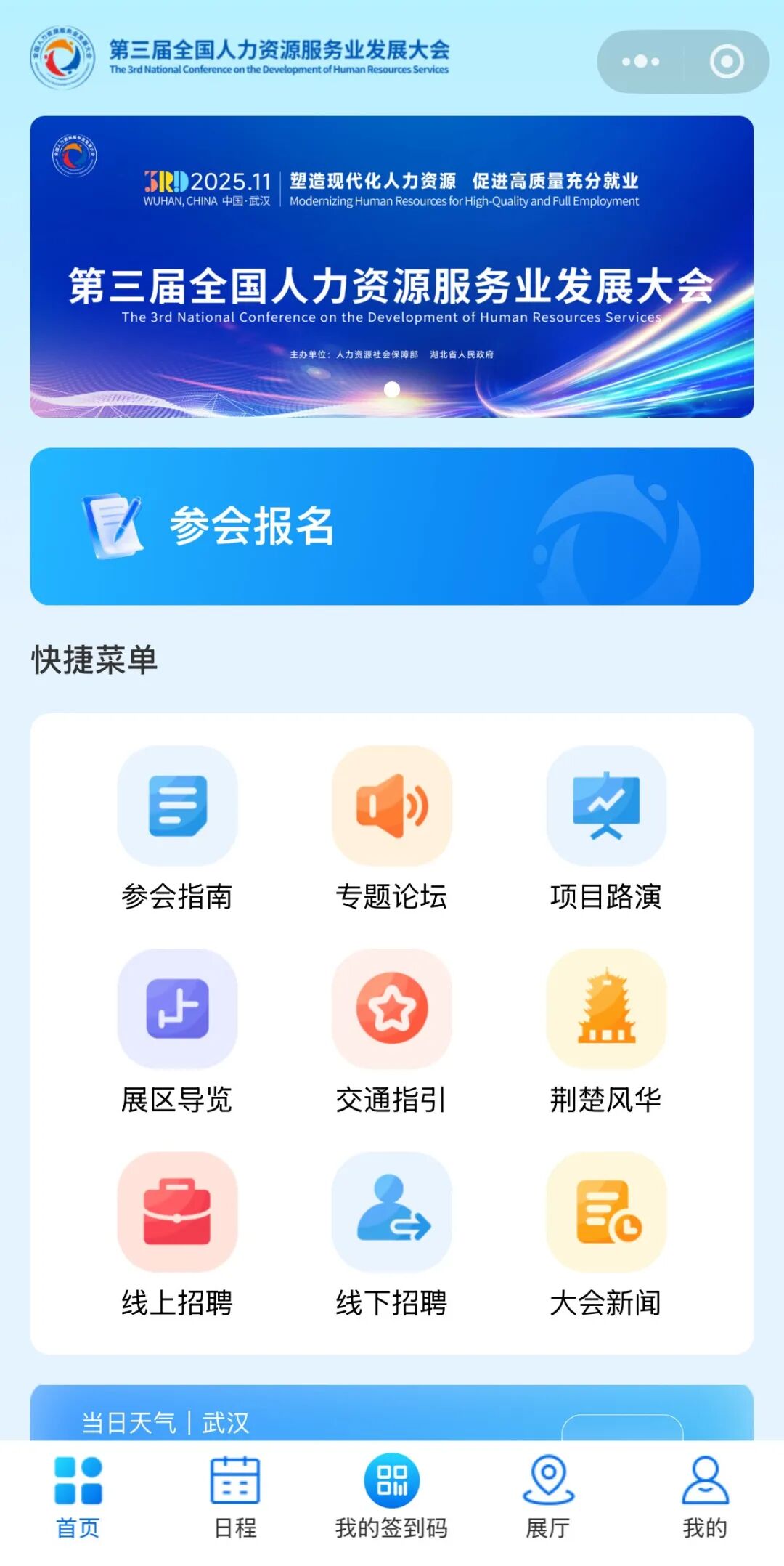 1.扫码进入小程序。在小程序首页,点击“参会报名” 按钮,进入报名界面。