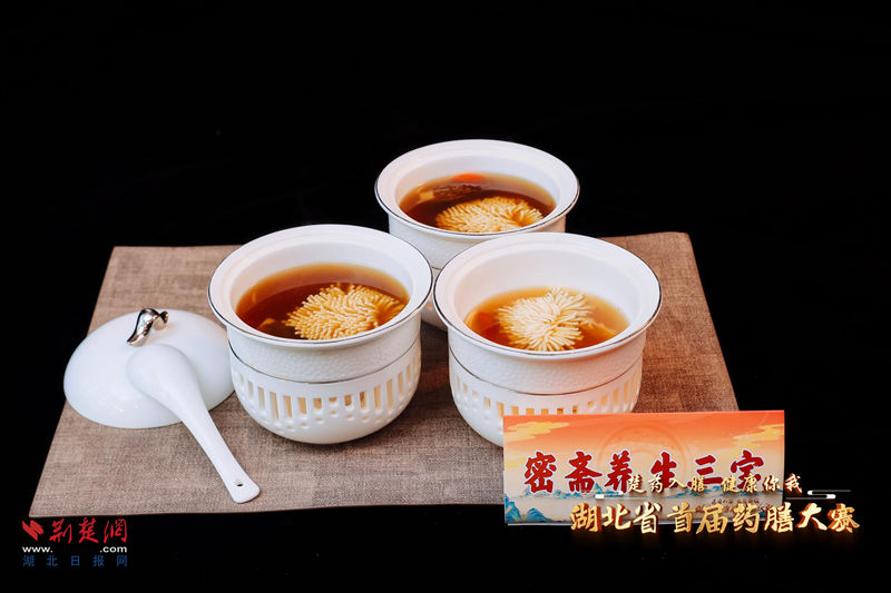 罗田县万密斋健康产业发展有限公司精选罗田道地天麻、茯苓等药材,匠心烹制的 “茯苓天麻鱼头汤” ,以其汤色奶白、鲜醇不腻的口感和健脾安神、补脑益智的显著养生功效,在众多作品中脱颖而出,成功入选 “湖北省十大药膳” ,成为展示罗田药膳实力的一张亮眼名片。