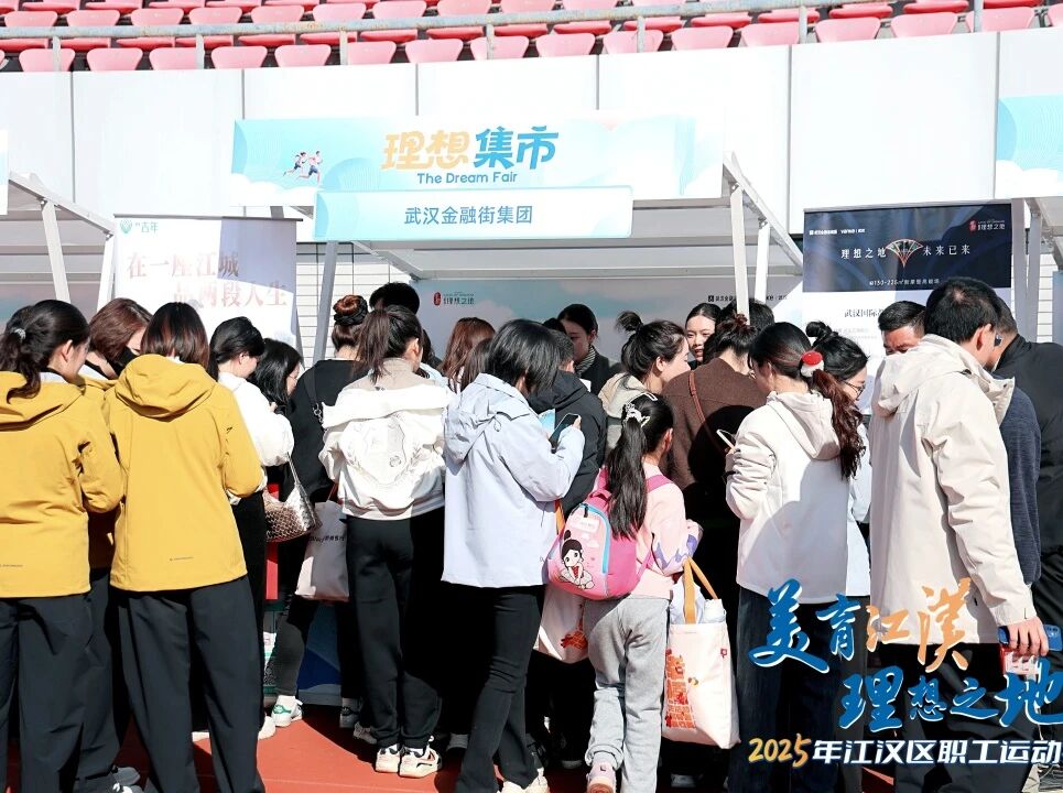 赛场外,三大特色展区——“金融服务”“生活文创”“非遗体验”同步开放,营造出“可触、可购、可品”的沉浸式文化场景,成为职工休憩与了解江汉的又一窗口。