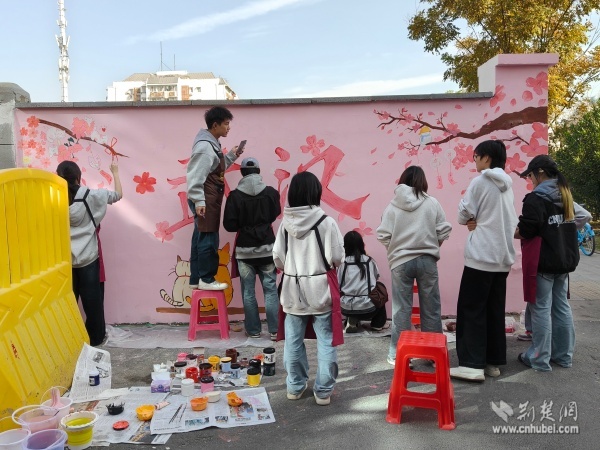 荆楚网(湖北日报网)讯(通讯员 朱敏婕 马量宇)为美化社区环境,传递城市文明温度,11月29日至30日,武昌区黄鹤楼街道西厂口社区党委链接资源,武汉学院艺术与传媒学院青年志愿者协会资源,开展了为期两天的“墙上生花,美在西厂”主题墙绘志愿服务活动。10余名青年志愿者以创意为墨、以青春为笔,将社区八卦井旁一面空白围墙打造成展现武汉特色与城市温度的视觉画卷。