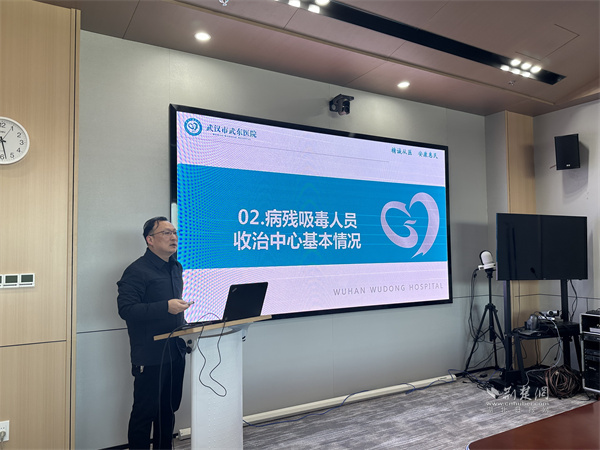 武汉市武东医院院长刘连忠致欢迎辞,简要介绍医院发展历程与核心业务。他强调,戒毒工作关乎社会民生,希望以此次交流为契机,在戒毒知识普及、心理问题转介、科研合作等方面,与专家搭建高效协作渠道。