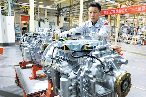 12月8日,在位于张湾区的东风龙擎动力有限公司生产车间,工人正有序装配变速器。