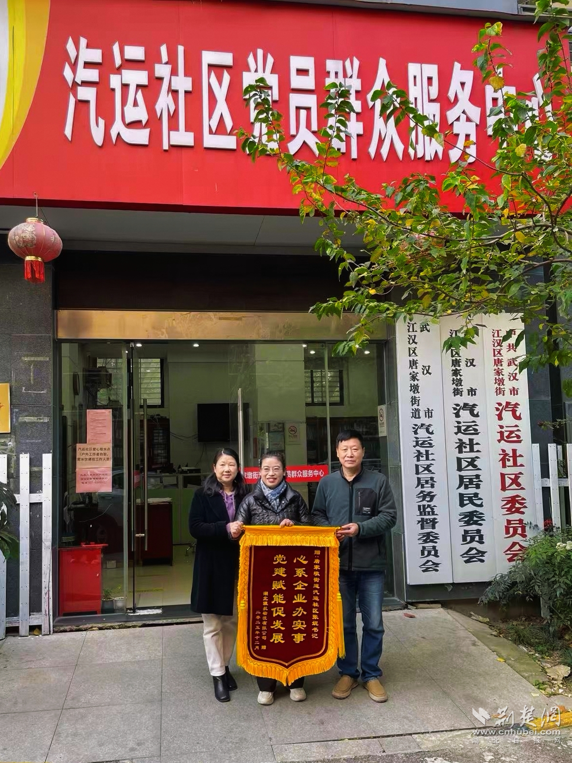 荆楚网(湖北日报网)讯(记者 何婧 通讯员 顾蝶)12月9日上午,湖北煜航物流有限公司负责人来到江汉区唐家墩街道汽运社区,将一面写着“心系企业办实事 党建赋能促发展”的锦旗送到社区党委副书记张妮手中。这面锦旗背后,是社区楼宇党建在帮助企业解决实际困难中的一次有力实践。
