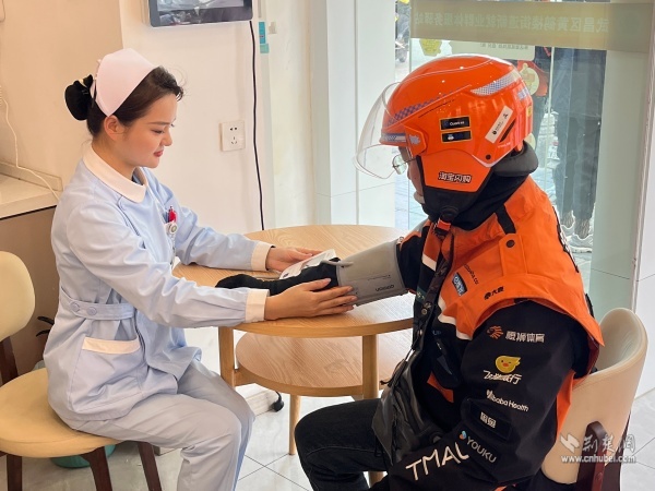 为骑手测量血压。 通讯员供图