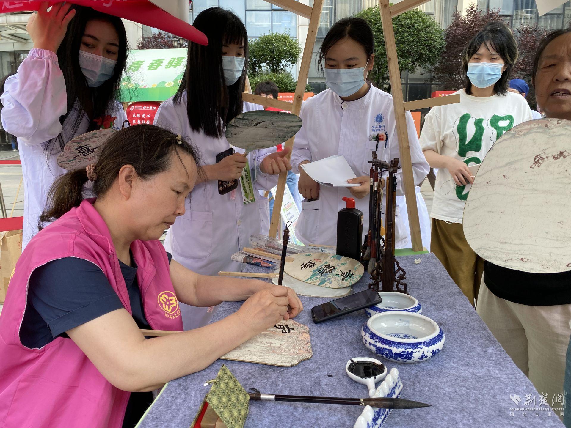 荆楚网(湖北日报网)讯(记者 何婧 通讯员 吴越 郭琼)江汉的街巷里,常能看到这样一些场景:一位书法志愿者在小小的摊位旁写下祝福卡;一群年轻的幼儿园教师提着画材,走进协和医院的病区,为患病儿童上美育课;几位退休阿姨围坐在一起,教社区居民编织;还有志愿者走访高龄独居老人,陪他们聊天、量血压、做些简单的生活协助。