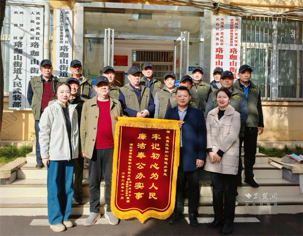 荆楚网(湖北日报网)讯(通讯员 熊雅婷)“路宽了,灯亮了,大家伙儿的心也更齐了!” 近日,珞珈山花园小区业主委员会与退役军人互助会的代表们,专程将一面印着“牢记初心为人民 廉洁奉公办实事”的锦旗送到珞珈山街道办事处,以此诚挚感谢街道在小区精细化治理中给予的鼎力支持。