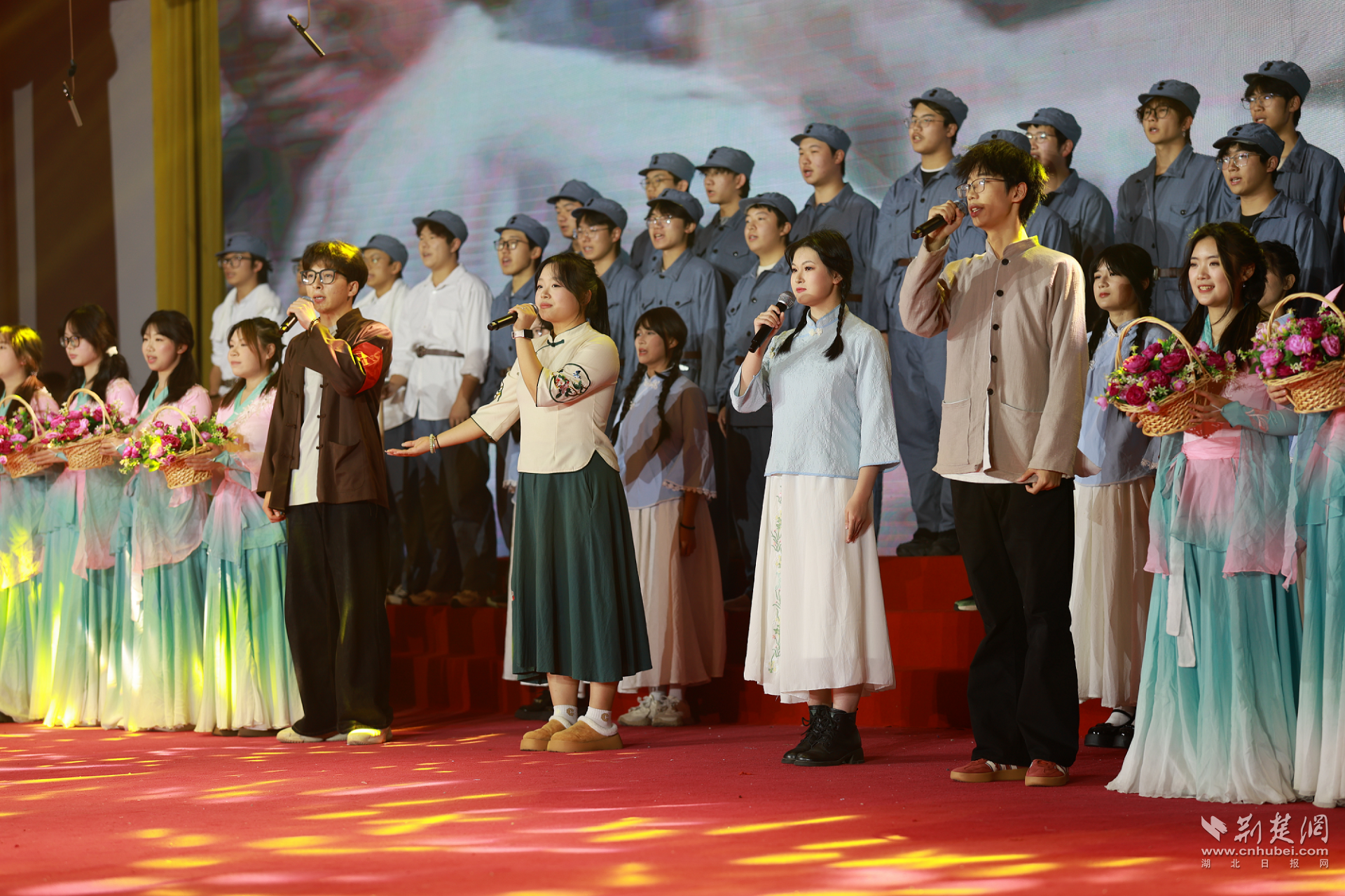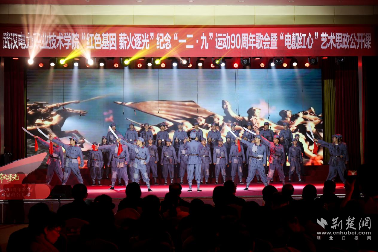 荆楚网(湖北日报网)讯(通讯员 李随阳)12月10日,武汉电力职业技术学院(以下简称“学院”)举办“红色基因 薪火逐光”纪念“一二・九”运动90周年歌会暨“电靓红心”艺术思政公开课。这场活动将红色旋律化作鲜活教材,为全院师生及云端观众带来了一堂沉浸式思政学习体验。