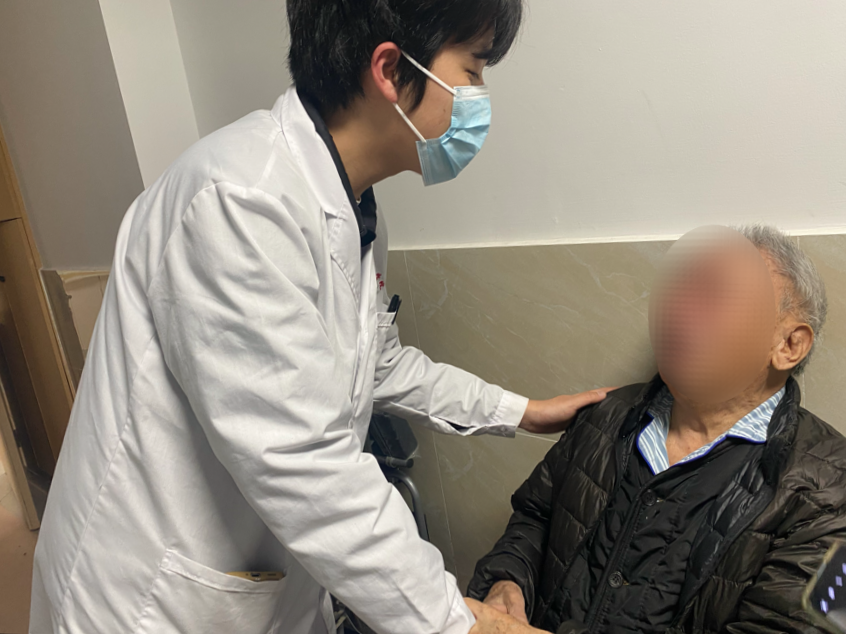 自那以后,每当张子腾查房或从病房前经过,陈爷爷的目光总会紧紧追随着他。那天护理查房时,陈爷爷一看到张子腾,嘴唇便开始微微颤动,那双阅尽近一个世纪沧桑的眼睛里,迅速蓄满了泪水。