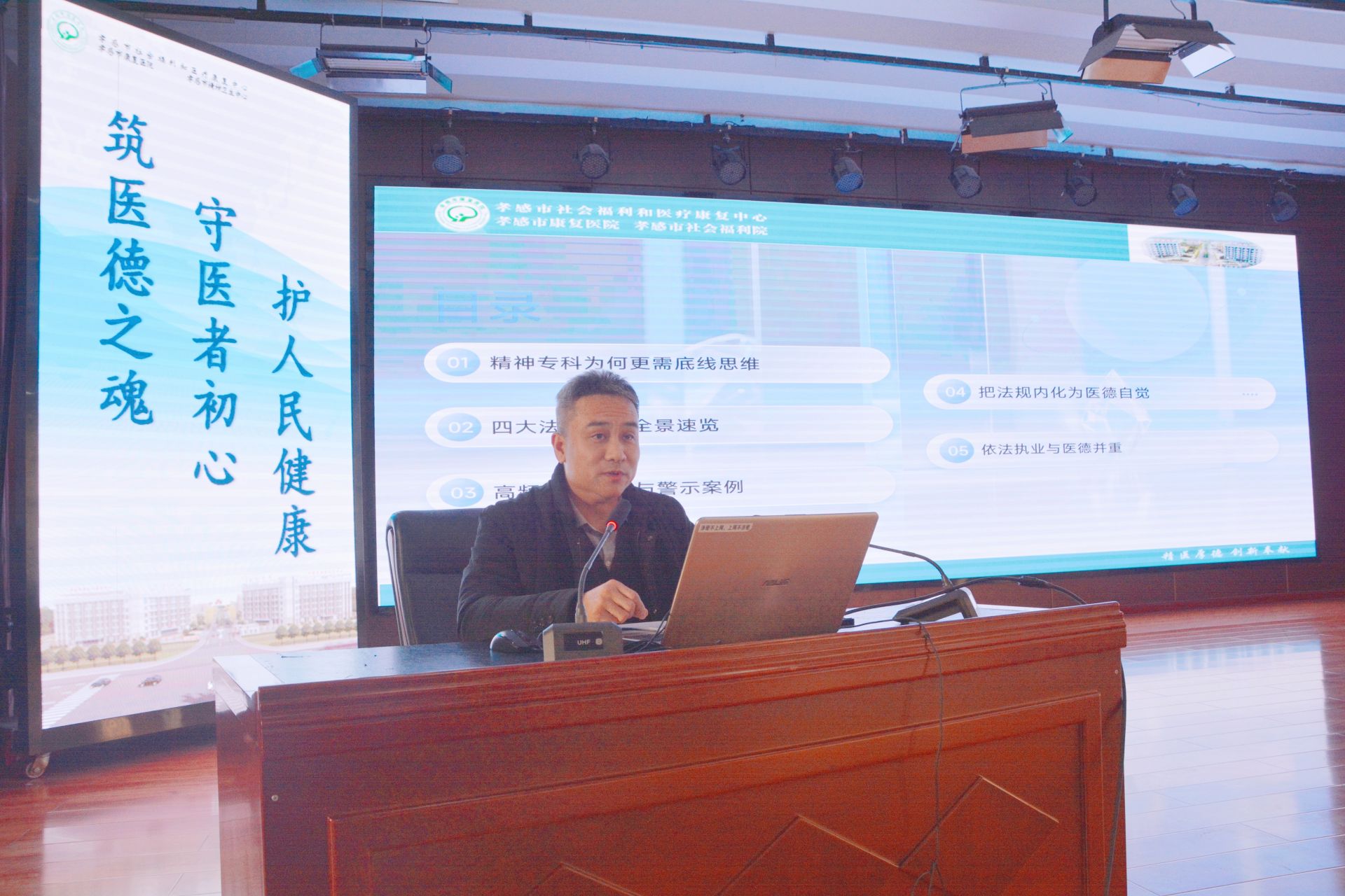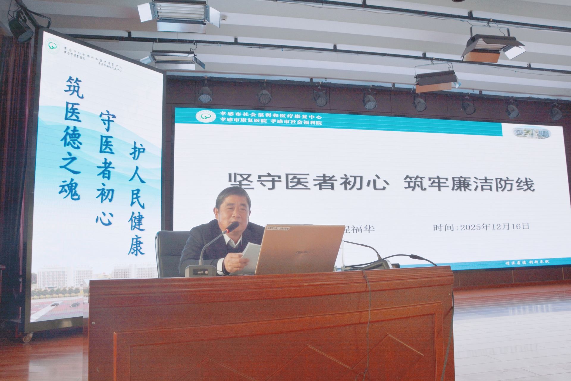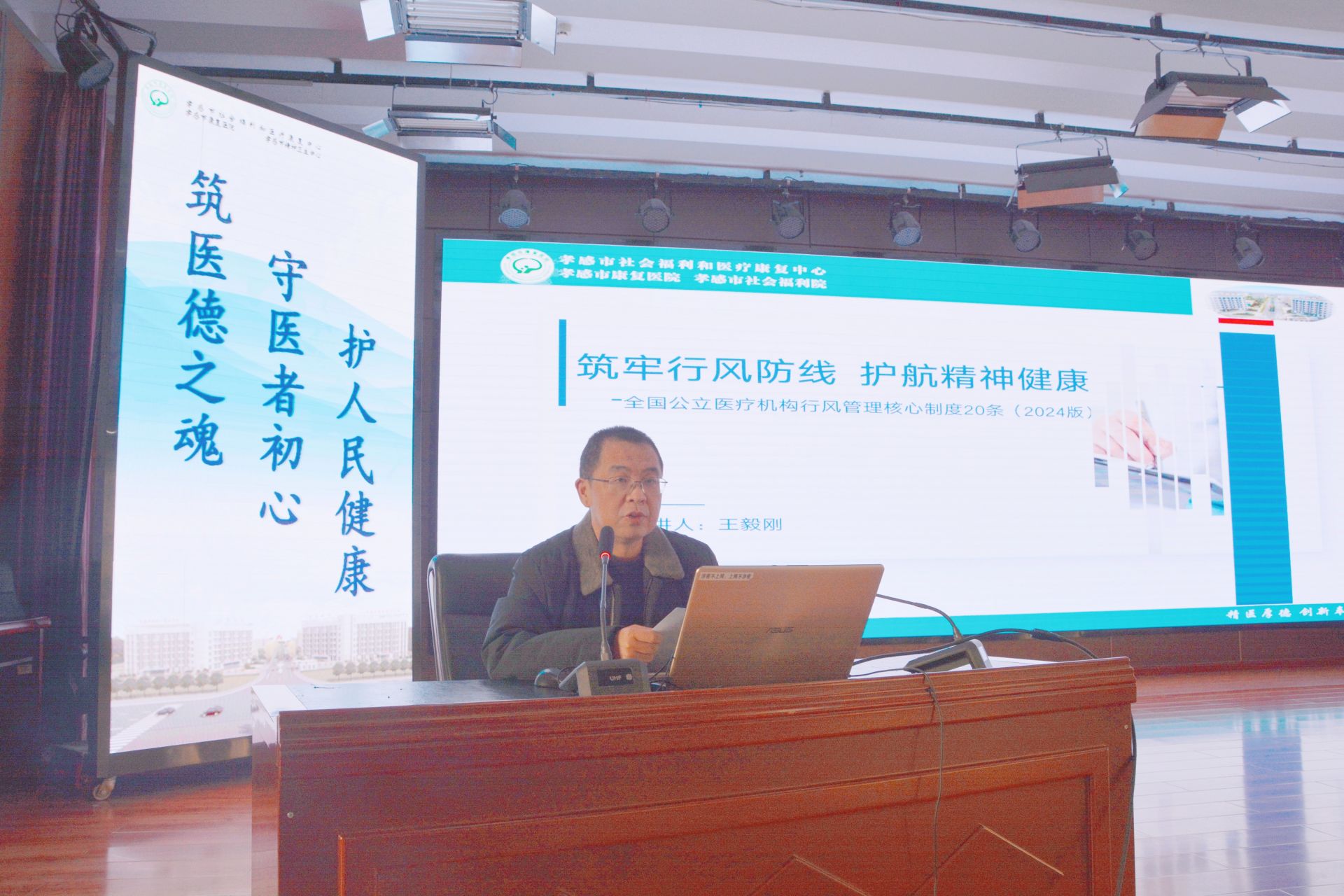 荆楚网(湖北日报网)讯(通讯员 周俊)为持续贯彻落实孝感市卫生健康委员会《关于组织开展全市“医德医风学习月”通知》文件精神,推动医德医风建设走深走实,12月16日下午,孝感市市社会福利和医疗康复中心(以下简称“中心”)在门诊六楼大会议室举行“医德医风学习月”第二次专题培训,“中心”领导班子成员及全体干部职工参加了培训。