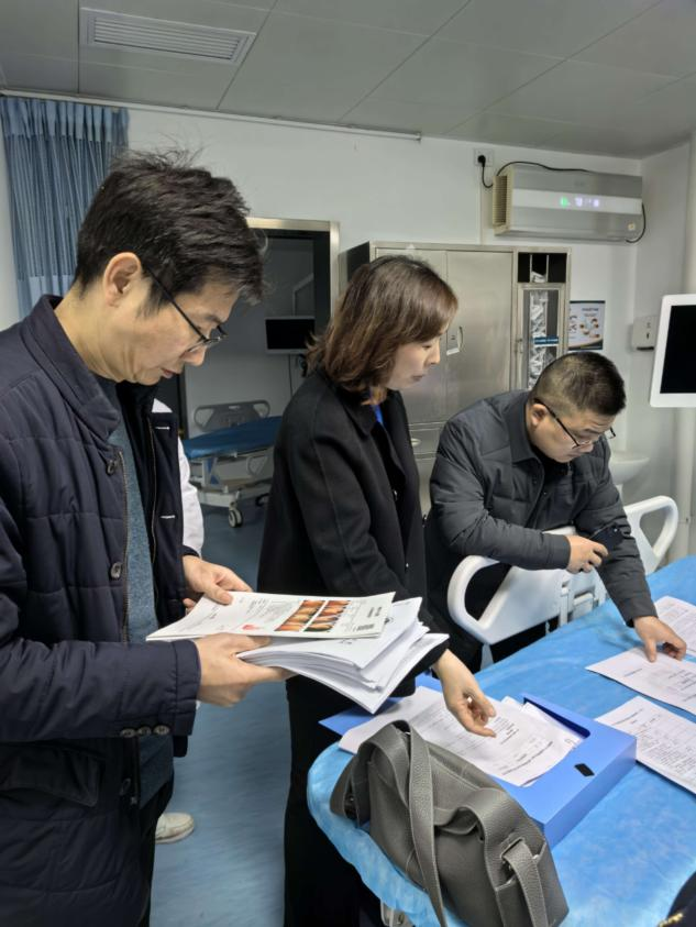 专家组由武汉大学人民医院安萍教授、陈炜教授、骆孜护士长及武汉科技大学天佑医院龙辉教授组成,采取“现场核查+资料审阅+人员访谈+集中汇报”的方式,对区域布局与流程、操作人员资质、内镜消毒灭菌、患者安全管理、设备耗材保障等八大核心维度进行全方位评估。检查过程中,专家组深入消化内镜中心,实地查看诊疗区域布局、设备运行状况及消毒供应流程,仔细翻阅病历档案、操作记录和质控台账,与医护人员面对面交流诊疗规范落实及应急处置流程等情况。