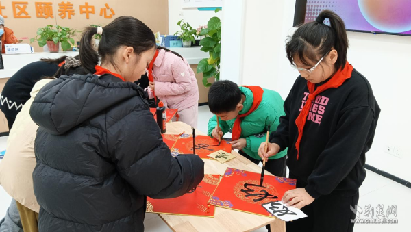 社区党委充分发挥核心引领作用,积极统筹资源、搭建共建平台。活动现场洋溢着温馨祥和的节日氛围。未来实验小学的孩子们带来精心编排的文艺节目,充满朝气的歌曲、舞蹈与诗朗诵为颐养中心注入了青春活力,赢得老人们阵阵掌声。学生志愿者还与武昌区人大代表、未来实验小学校长邓徐念一起挥毫泼墨,书写“福”字与新春寄语,在笔墨间传递对长者最真挚的祝福。