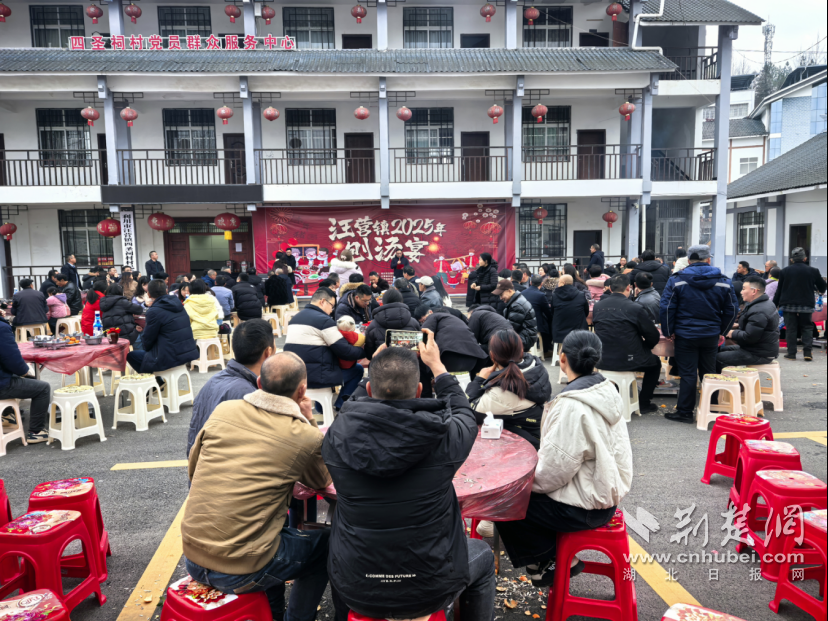 荆楚网(湖北日报网)讯(通讯员李杭)为弘扬乡土文化,增进乡情乡谊,汇聚发展合力,助力乡村振兴。12月25日,由利川市汪营镇人民政府主办,镇农业农村服务中心与四圣祠村尖刀班共同承办的“汪营镇刨汤宴”活动在四圣祠村村委会广场成功举办。汪营镇本土企业家及市场主体代表、四圣祠村在外能人志士、市直部门相关领导同志、镇政府全体干部职工、各村党支部书记及驻村第一书记等共计300余人欢聚一堂,共品传统年味,共话家乡发展。