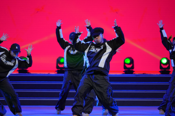 19时55分,开幕式文体展演正式拉开帷幕,现场约3000名观众共同欣赏了这场兼具孝感地域特色与高水准艺术呈现的视听盛宴。展演活动分为《感悟·澴川律动》《感动·家国深情》《感恩·建功支点》三个篇章,涵盖街舞、武术、歌舞等多种形式,既展现本地文化底蕴,也传递出全民健身的活力与热情。