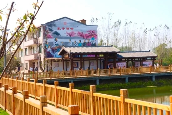 学堂整体建筑风格呼应儒家文化特质,采用仿古建筑形制,恢复重建孔子驾车讲学、筑台晒书等遗迹遗址、景点景观12处,在烟应干道沿线绘制孔子驾车游学、列国讲学等墙画、壁画40多幅,让参观者直观感受历史文脉与时代精神的交融。作为巡店镇新时代文明实践的重要节点,学堂的建成填补了该镇传统文化传承与文明实践阵地的空白。