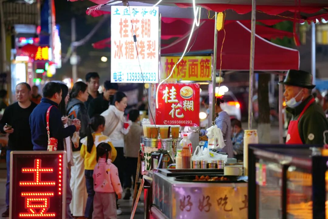 灯火亮起摊贩叫嚷,川流不息