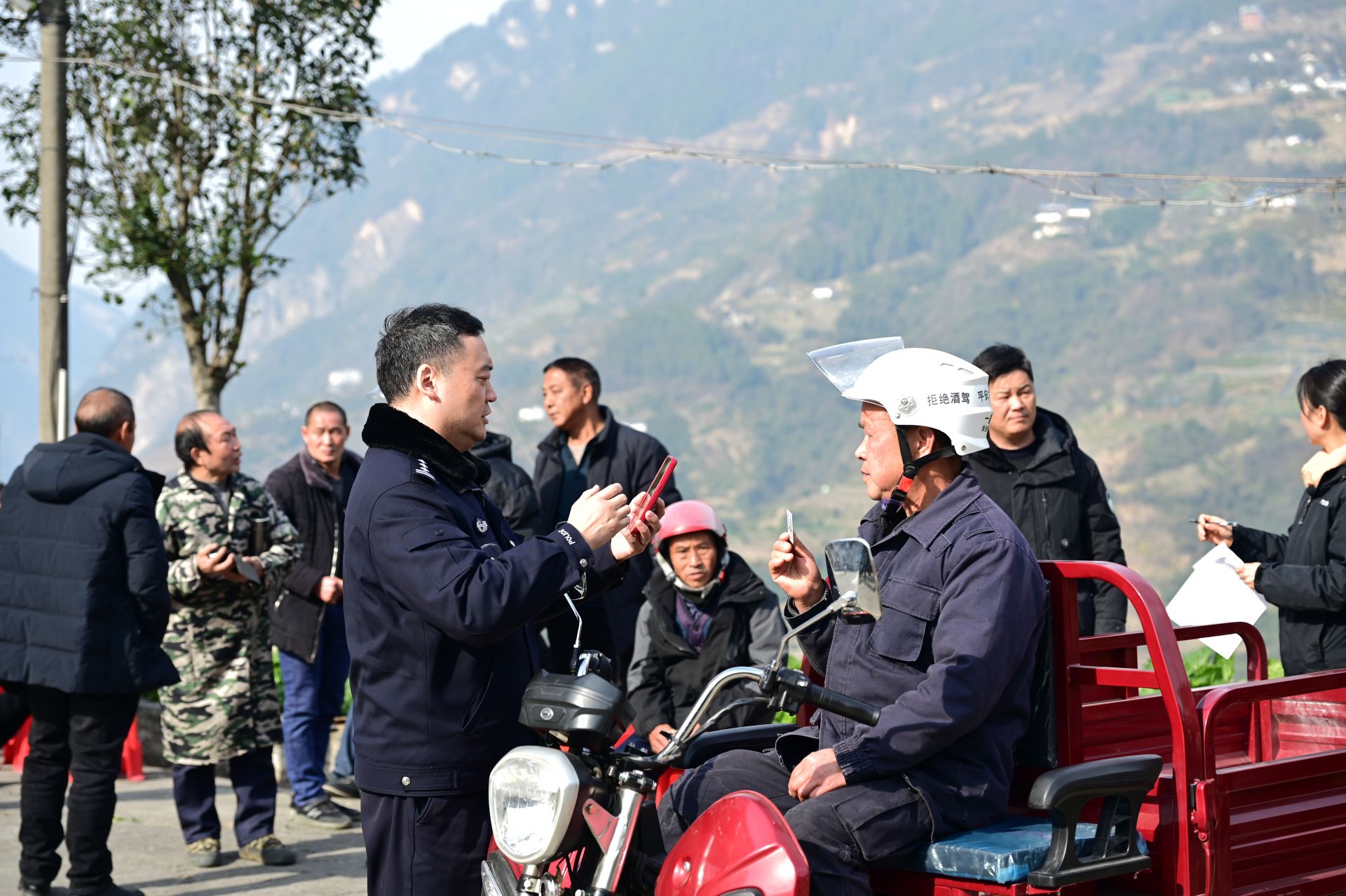 民警们通过播放警示教育片、剖析本地典型事故案例,重点讲解了无证驾驶、酒后驾车、不佩戴安全头盔、违法载人等交通违法行为的严重危害。特别是针对屈原镇地处山区、道路弯多路窄的特点,民警反复叮嘱大家:“山路骑行,一定要减速慢行,过弯道前要鸣笛示意,宁停三分,不抢一秒。”