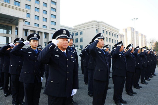 参加仪式的全体民警整齐列队、庄严肃立,精神抖擞,肃立注目,面向警旗致以最崇高的敬礼,以此表达对公安事业的无限忠诚和热爱。