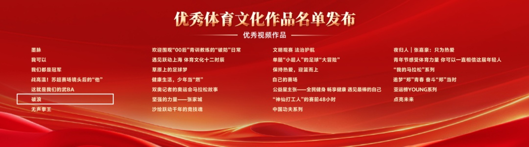2025年6月,中宣部文明培育局与国家体育总局宣传司、国家广播电视总局传媒机构管理司共同发起体育公益广告和中华体育故事征集活动,共征集到8000余件作品,经过严格公正审核遴选,最终确定推介120件优秀体育文化作品。其中,我省共有5件作品入选。