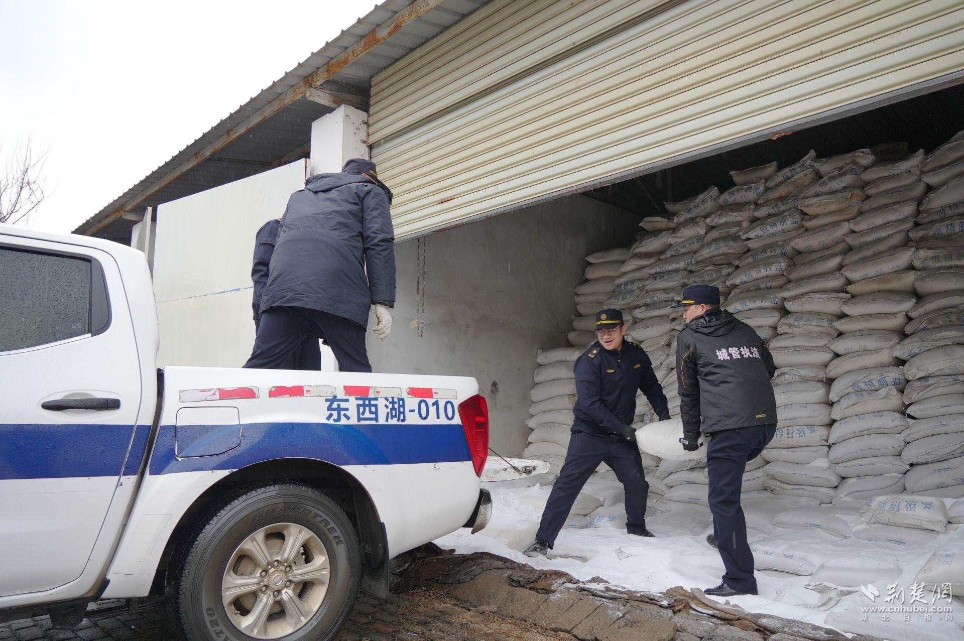 这是东西湖区迎战低温雨雪天气的一个缩影。全区城管、环卫系统已启动应急“备战模式”,23个融雪防冻物资储备点全面运转。目前,融雪剂储备量达1406.85吨,草垫、麻袋约8.2万条,分类存放、专人管理,确保“调得出、用得上”。